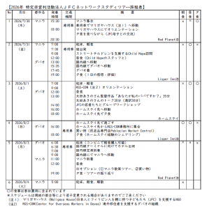 【旅程表】HP上のスタディツアーのご案内に記載されている旅程表をご確認下さい。